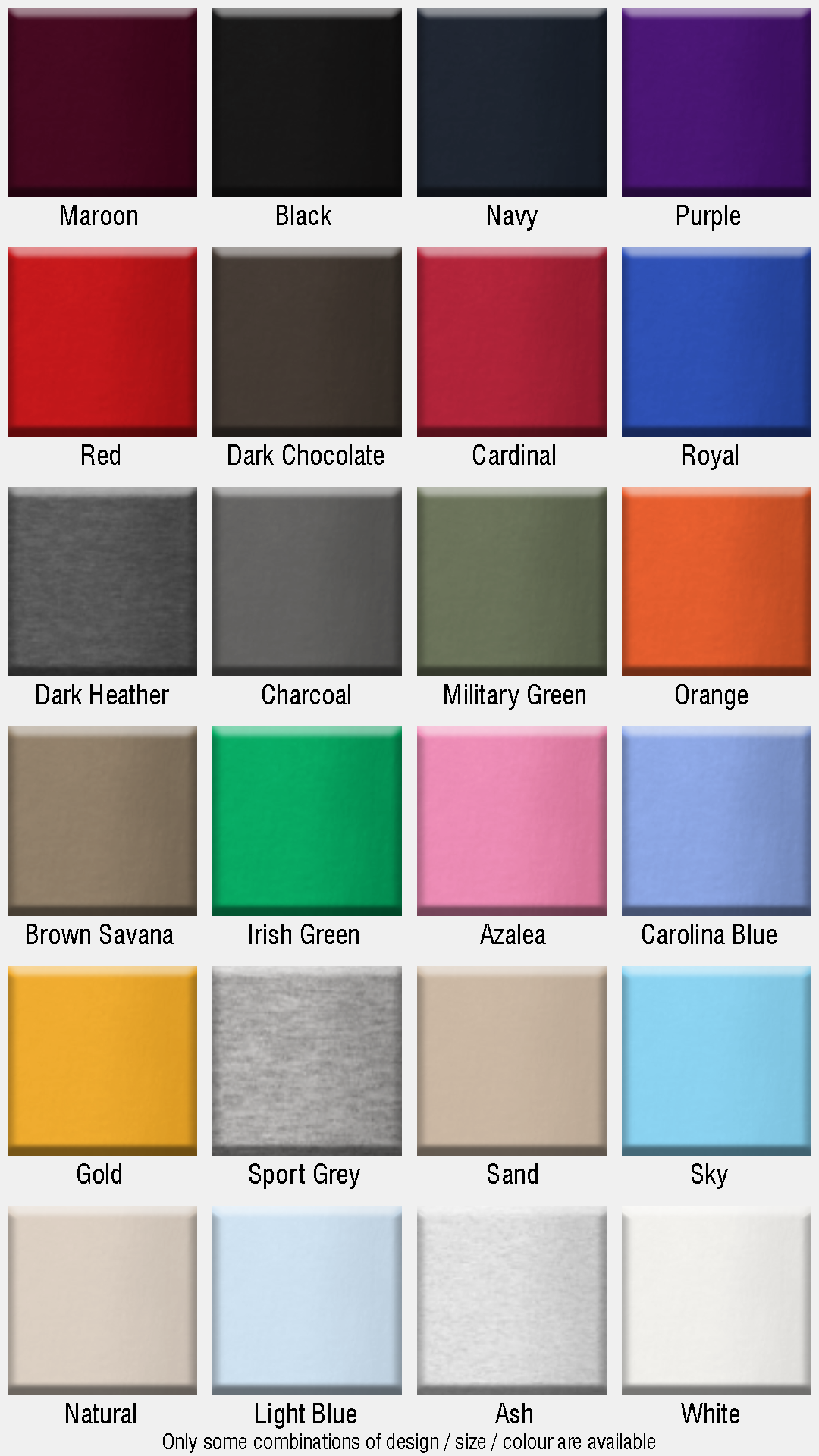 • Heather colors are 50% cotton, 50% polyester